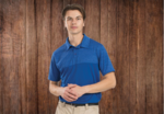 - 4.3 ounce 100% polyester heathered wicking knit top body, collar and sleeves